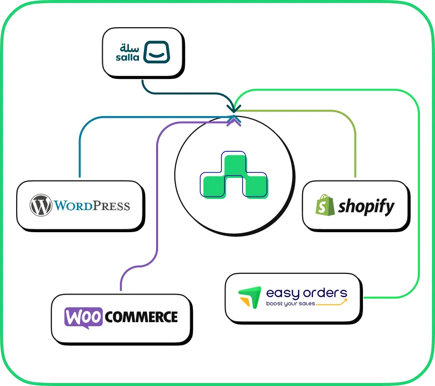 اربط بسهولة مع إيزي أوردرز، سلة، شوبيفاي، ووردبريس خلي شاطر يتعلم عن منتجاتك ويبدأ في زيادة مبيعاتك.